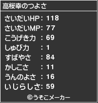 お友達のトコでうそこメーカーの新しいの出ていたので、続きに書きます。つよさメーカーです。